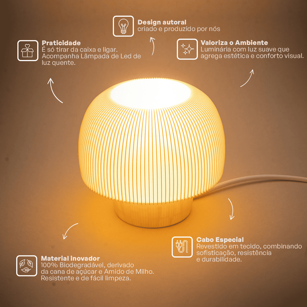 A Luminária Cogumelo otimiza ambientes compactos, sendo ideal para iluminação de leitura. Com design elegante, oferece luz amarela suave, criando uma atmosfera acolhedora e funcional para mesas de cabeceira.