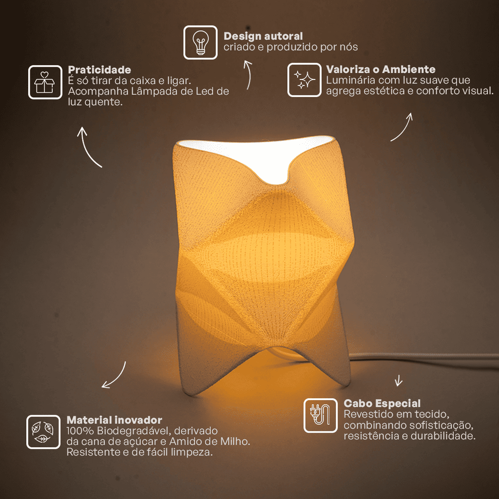 A Luminária Origami Mini, uma versão compacta inspirada na arte japonesa, otimiza a iluminação ambiental e a decoração. Fabricada com materiais de alta qualidade, confere um toque moderno e elegante ao espaço.