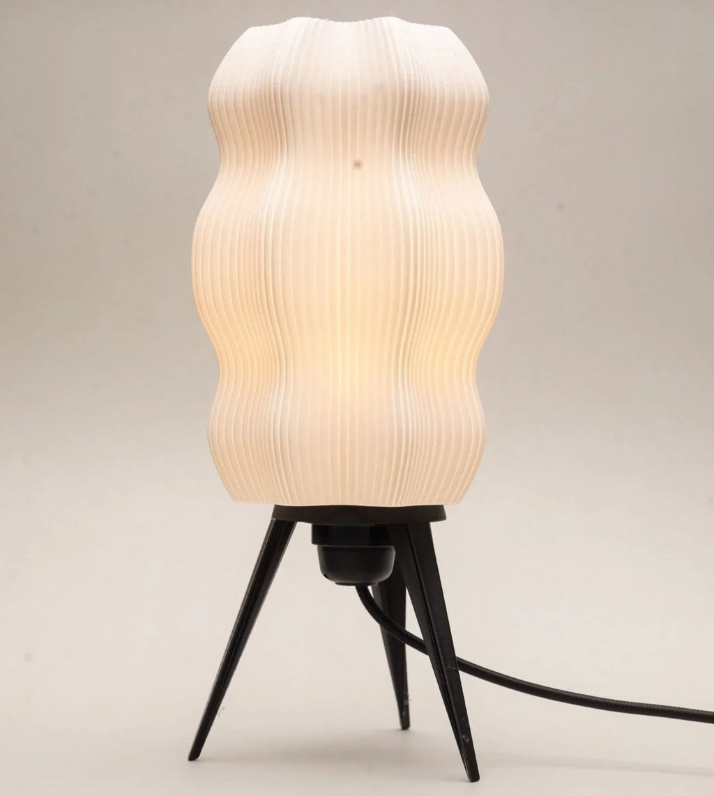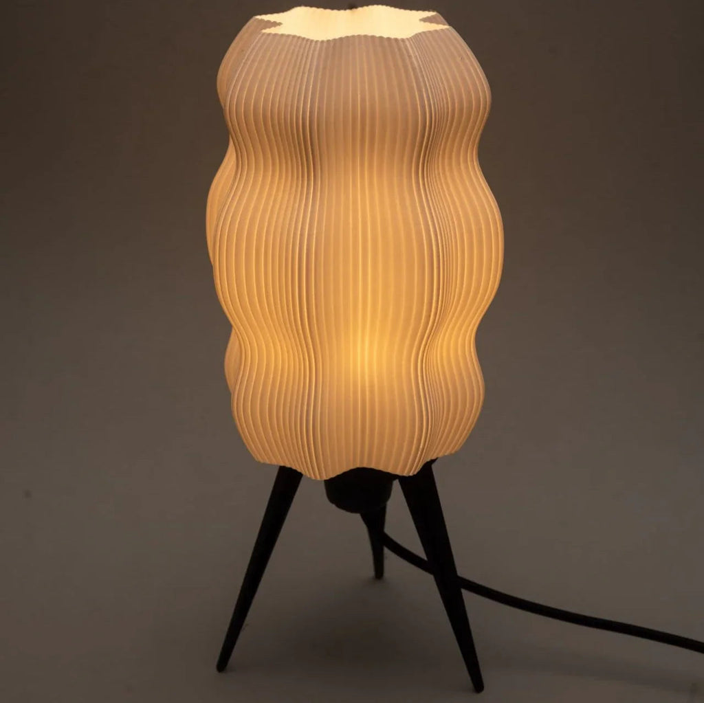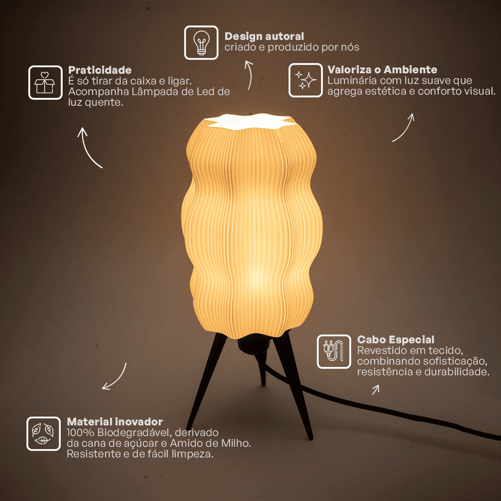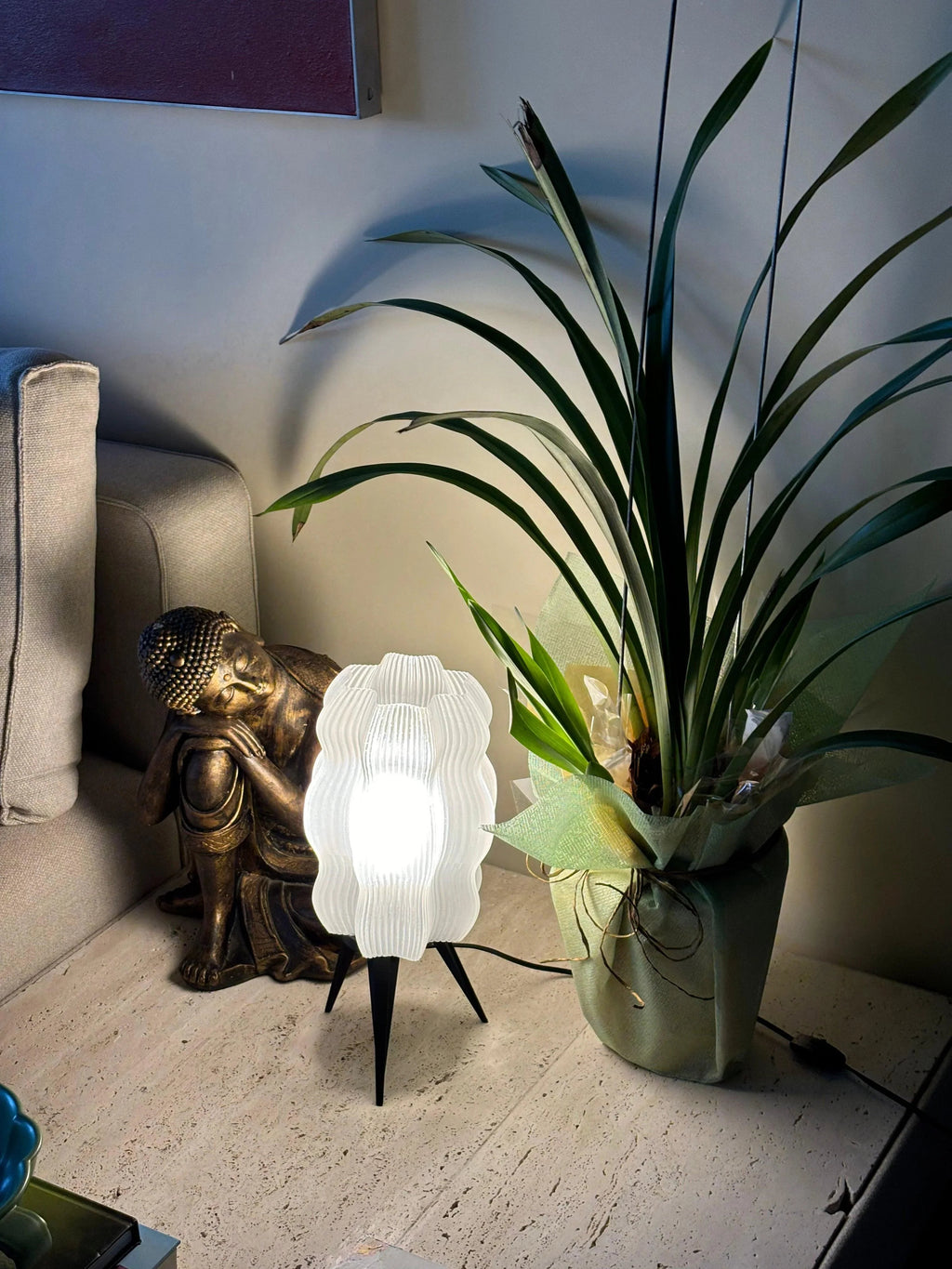 A Luminária Velvet Branca apresenta um design ondulado que proporciona iluminação difusa, criando um ambiente sereno. Sua estrutura com acabamento rústico e texturizado integra-se de forma sofisticada a diversos estilos de interiores.